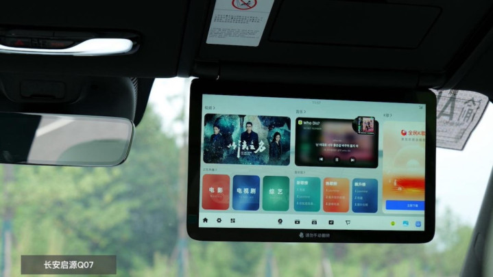 长安启源Q07除了说前排有49英寸AR-HUD+15.4英寸触控+12.8英寸副驾组成的三屏外,天枢座舱的后排也能拓展Pad屏,甚至车外还有画幅150英寸的DLP投影。